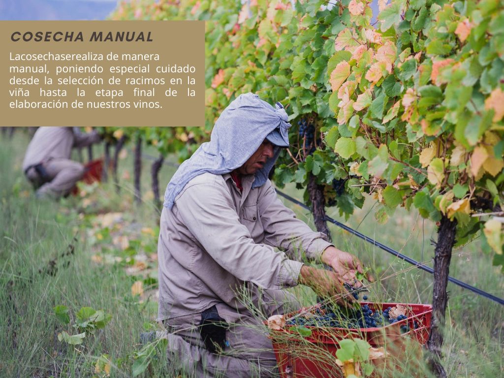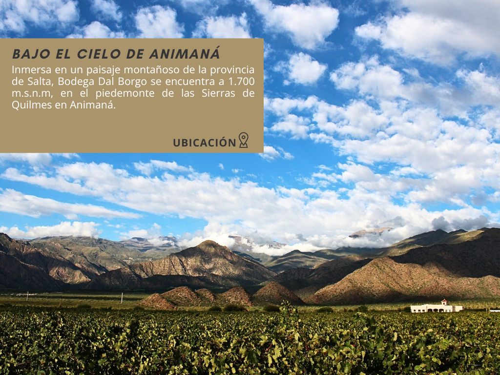Las condiciones naturales de Animaná —gran amplitud térmica, suelos aluvionales, escasas lluvias y más de 300 días de sol al año— garantizan uvas de excelente sanidad y maduración equilibrada. Cada cosecha se realiza de manera manual y con un cuidado minucioso que refleja el respeto por la naturaleza y el compromiso con la sustentabilidad.