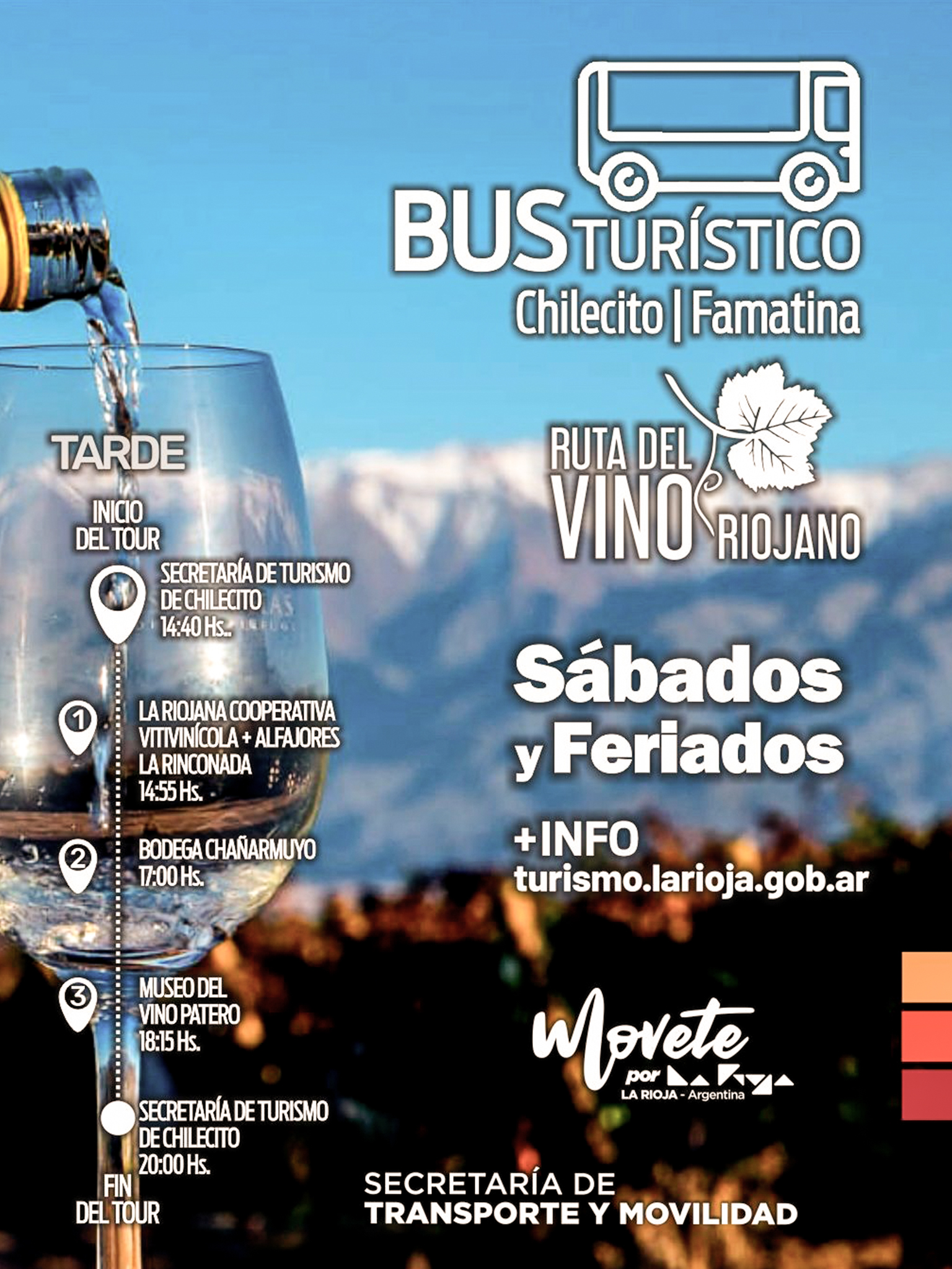 Movete por La Rioja y subí al Bus Turístico de la ruta del Vino Riojano Chilecito / Famatina