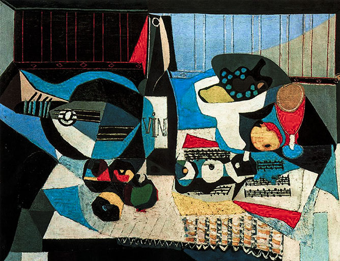 En 1926, año en que fue pintado este cuadro, el maestro se hallaba dando inicio a un estilo identificado como cubismo curviline, en París, Francia, por lo que al ver el lienzo podríamos presumir que se trata de un vino tinto francés el que se encuentra al centro de la mesa en la pintura.
